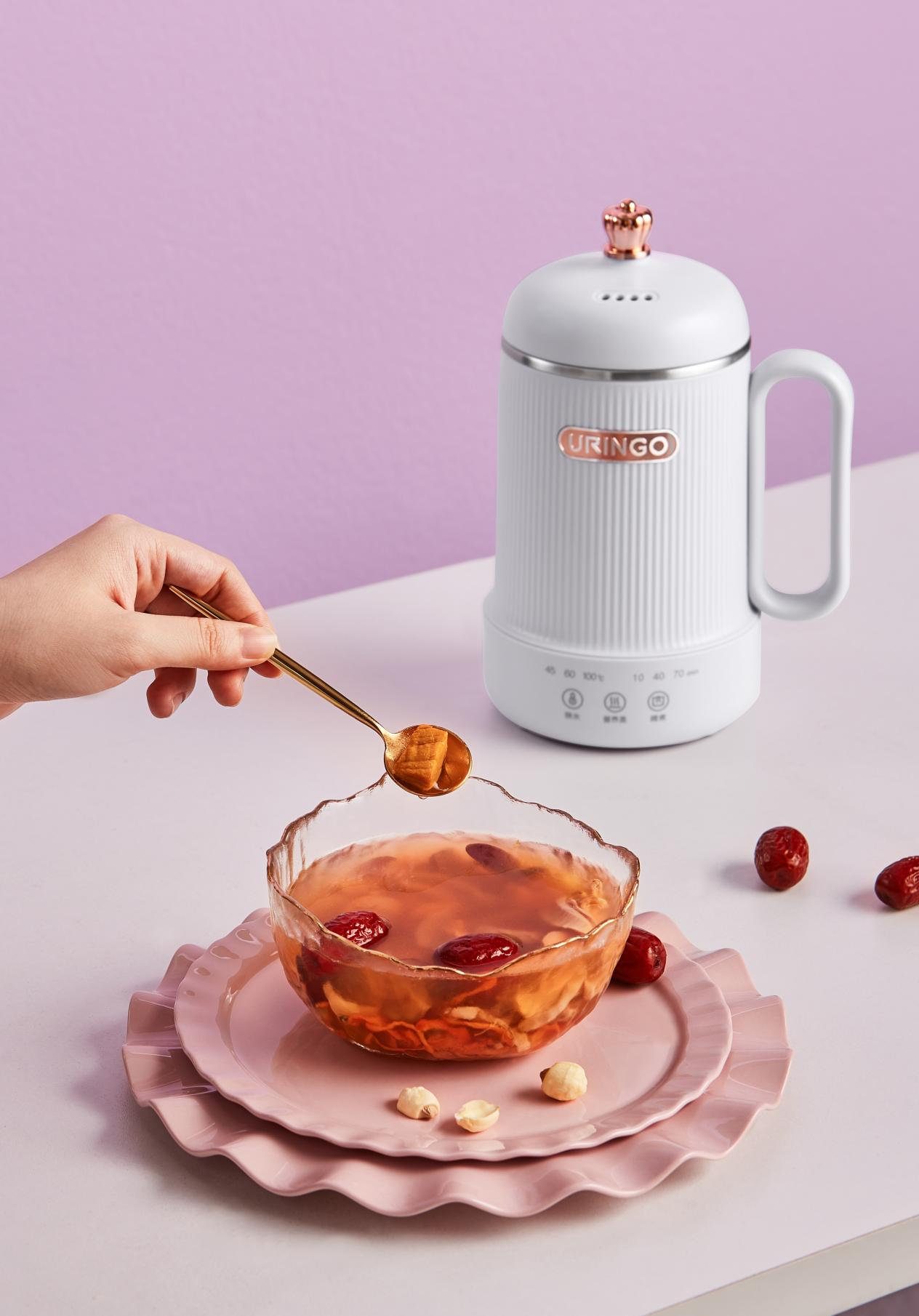 七彩叮当迷你养生壶,凭借功能多,体积小,且外观美观等特点广受年轻消费者欢迎。健康的饮食习惯,从七彩叮当迷你养生壶开始。清晨提前煮一碗粥,蒸一个鸡蛋,元气满满开始工作;中午简单做一盅炖汤,往桌面一放,食材准备好,开火就能够做,简单便捷,接下来的一切就交给时间;晚上熬夜加班,煮一壶花茶提神醒脑。一壶多用,对于上班忙碌却又想要养生的朋友们,这款养生壶真是一种既方便又省时省力的养生利器。