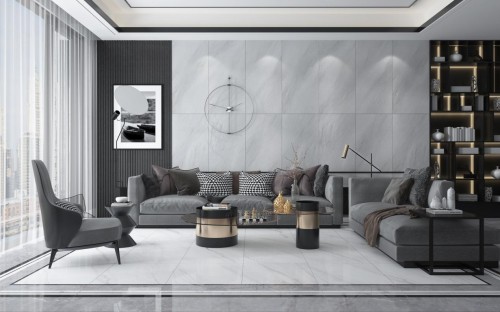 安华密斯现代砖系列“以一应变”,将白色作为基调,不仅体现在东方设计上,还展现在西方时尚艺术中,比如卡拉拉白和奥杰塔白。卡拉拉白灵感源于著名的雕像《大卫》,传闻当年米开朗基罗便是以卡拉拉山上的白色大理石雕刻而成的经典。卡拉拉白利用其经典的“灵魂”色调作为基础,注入了灵动的灰色线条,灰色纹理通过晶莹的白缓缓渗透出空间的各个角落,让空间更富轻松灵动的气息。而奥杰塔白在设计上选用了羽毛般晕染的纹理来展现如同沙浪涌动的变化,柔和细腻的肌理质感给予了空间迷人雅致的情调。