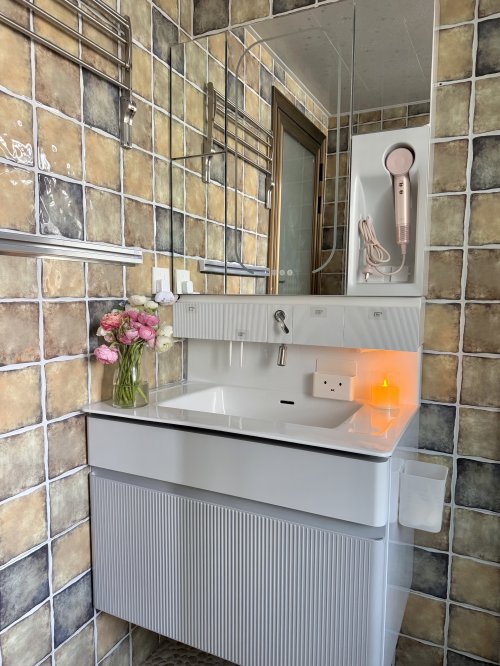 它给我的第一印象就是非常温柔的奶油风,适合喜欢简约优雅风格的朋友。浴室柜的智能除雾镜柜设计,我非常喜欢,镜面始终保持清晰。它的陶瓷一体盆非常耐脏,尤其是在洗漱后不容易沾上水渍,清洁起来也很方便。镜柜内的美妆收纳架让我很满意,各种化妆品和小物件都有自己的位置,不再需要杂乱无章的堆放。